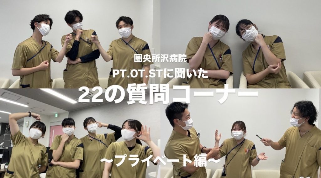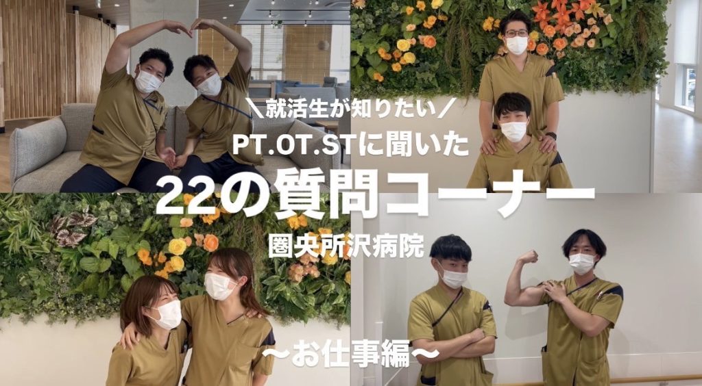 就活生や地域の方など、圏央所沢病院のリハビリテーション科に興味を持ってくださった方に少しでも多くの魅力をお伝えしたい!という思いで、話し合いを重ねて動画を作成しました。